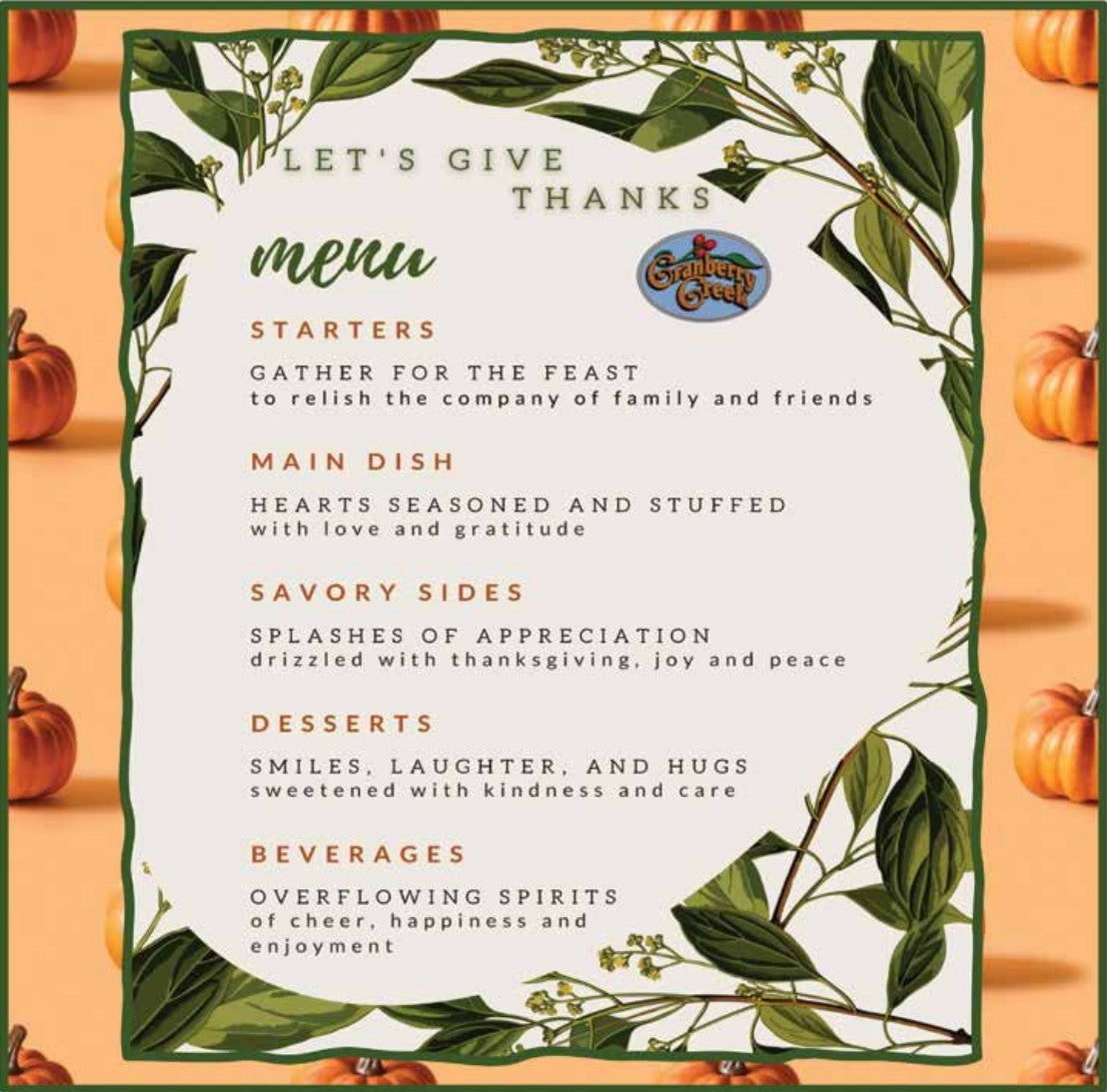 As we enter the month of giving thanks, it is an appropriate time to offer thanks to all those who volunteer in our Community without fanfare. To all who give their time and talent in helping our Community function well, remain enjoyable and well-maintained, the Board offers, on behalf of every resident, our sincere thanks to you! To all who volunteer on Committees, who clean up or perform necessary tasks, to everyone who offers a friendly wave or checks in on a neighbor or offers charitable services here or outside Cranberry Creek, to all who carry out thoughtful acts that go largely unnoticed, we also say...thank you to YOU!! We are all the better for having you here.